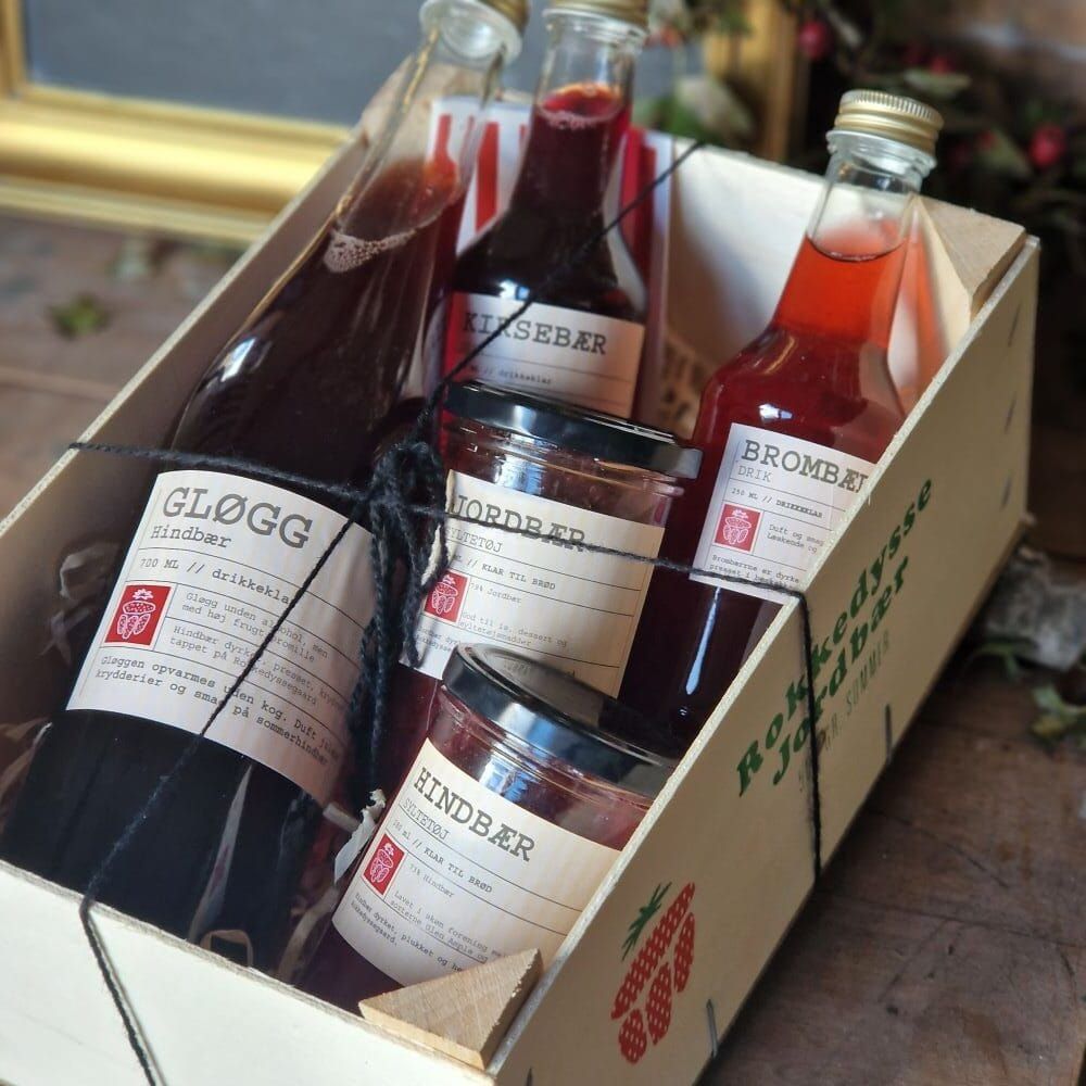 Hvad skal vi give kunder og medarbejdere i julegave?Vi hjælper gerne med at pakke en unik julegave med vores velsmagende bærprodukter fra Rokkedyssegaard i Kirke Værløse. Alle produkter er lavet på gården med bær dyrket Rokkedyssegaard. Ægte bærhåndværk fra jord til bord. Pakket i trækasser.