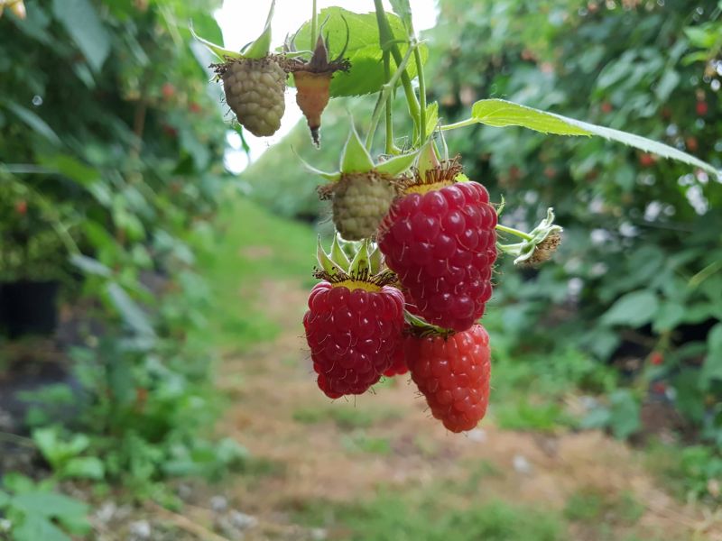 Sæsonen for at plukke hindbær selv starter i slutningen af juni og varer til begyndelsen af september.